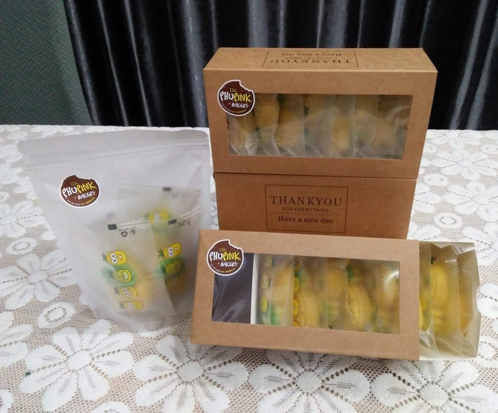 คุกกี้ทุเรียน ไส้ทุเรียน กล่อง บรรจุ 9 ชิ้น ราคา 90 บาท ถุงซิป บรรจุ 4 ชิ้น ราคา 40 บาท