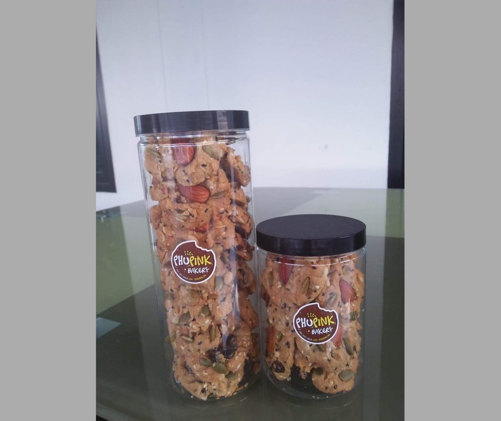 คุกกี้ธัญพืช กระปุก ขนาดบรรจุ 800 ml ราคา 140 บาท กระปุก ขนาดบรรจุ 450 ml ราคา 75 บาท